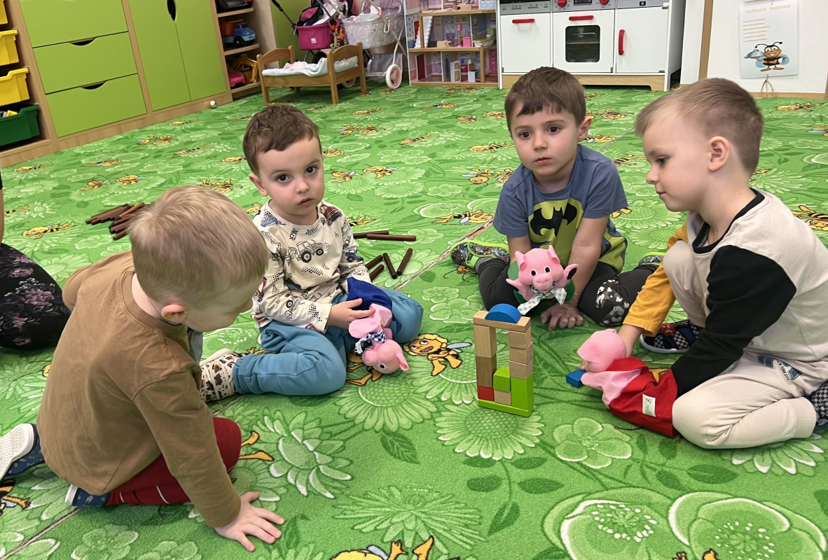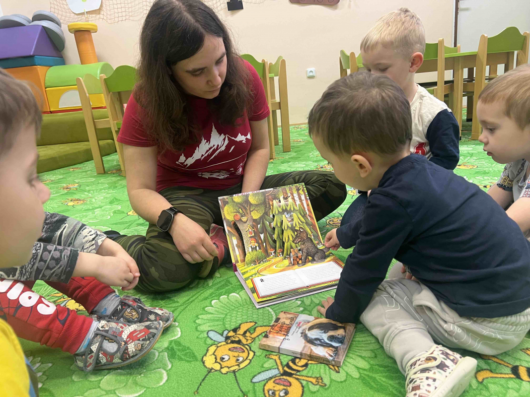 Jedním z březnových podtémat v naší dětské skupině bylo „Moje kamarádka kniha“. Děti si rozšířily slovní zásobu o nová slova, jako jsou spisovatel, ilustrátor, knihovna nebo knihkupectví. Povídali jsme si také o různých druzích knih – například o pohádkách, leporelech či encyklopediích – a připomněli jsme si, jak se ke knihám správně chovat.