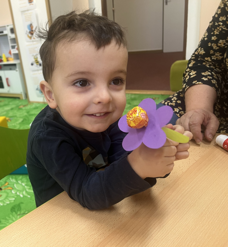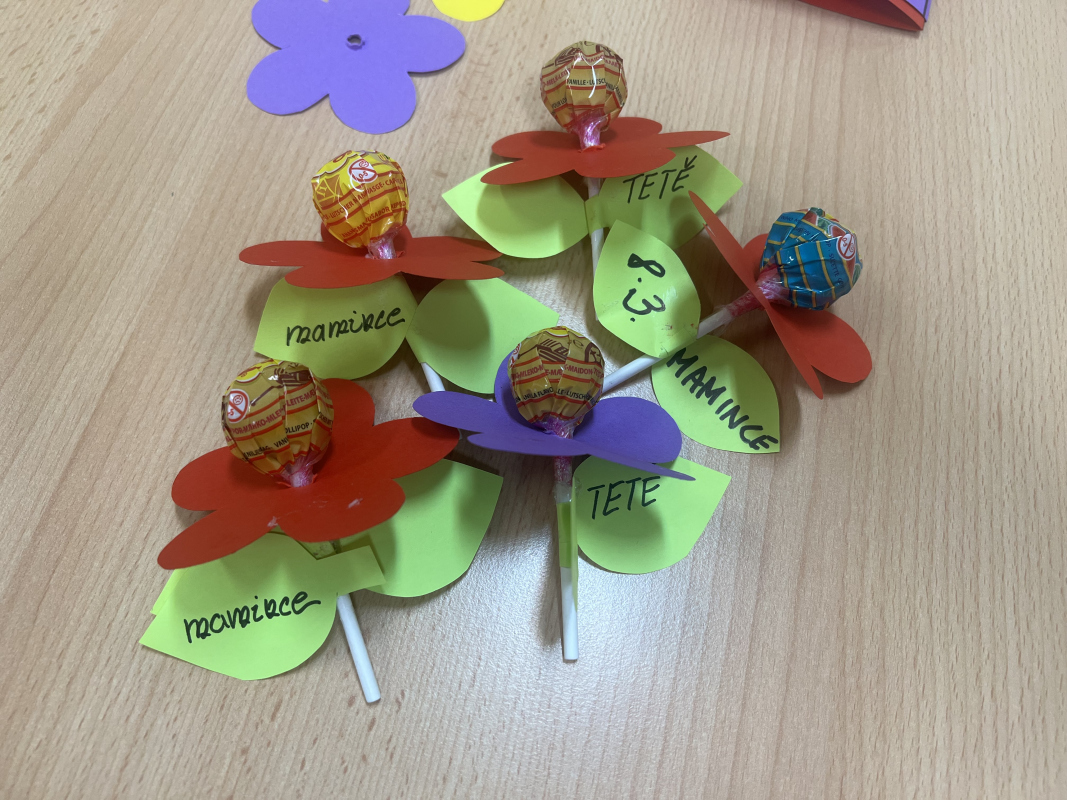 Během tohoto týdne děti nezapomněly ani na své maminky. K jejich svátku, který připadá na 8. března, pro ně s radostí vyrobily malou kytičku.