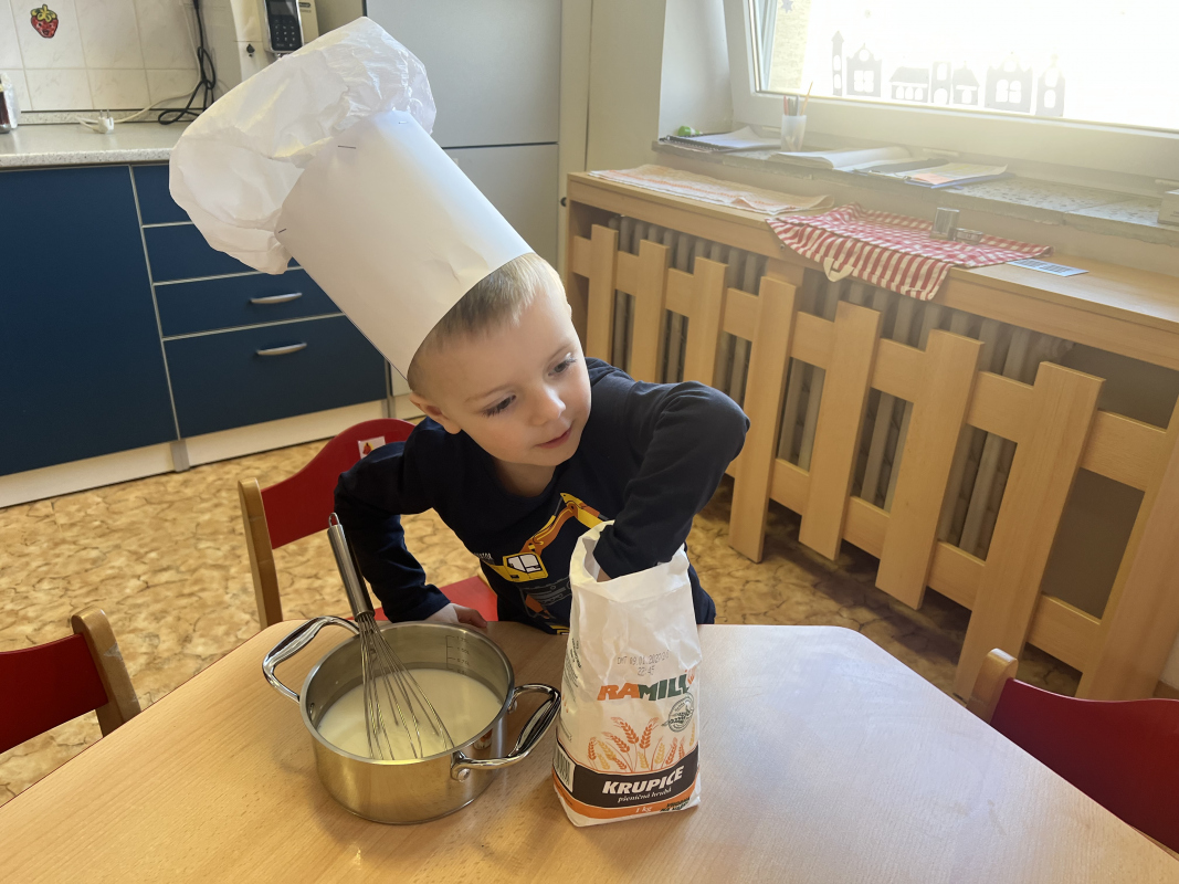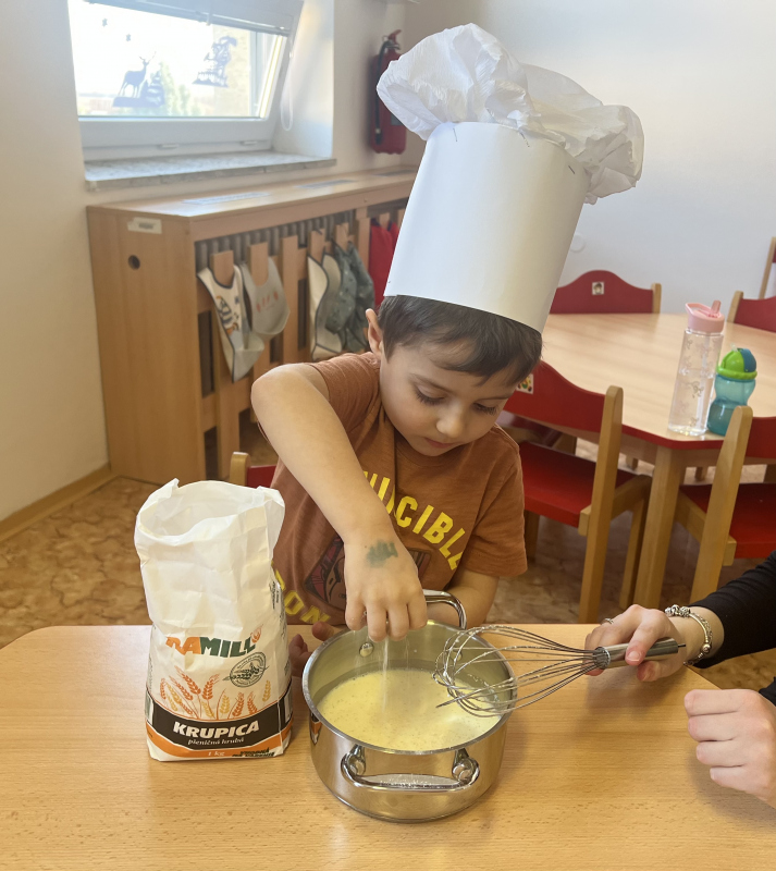 Společně jsme si také zahráli pohádkovou hru Dobble a na pohádkové stezce děti poznávaly známé pohádkové postavičky. Vyzkoušely si i zahrát některé pohádky a k jedné z nich jsme si společně uvařili kaši.